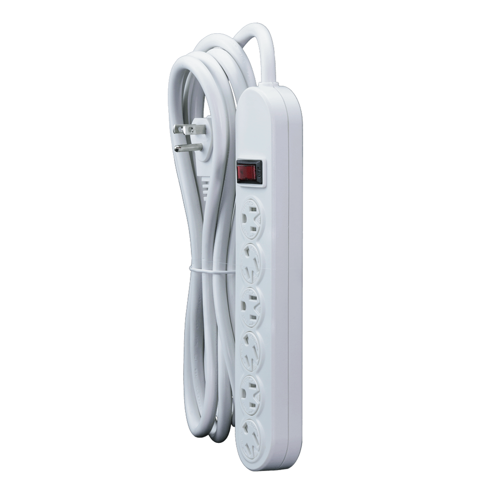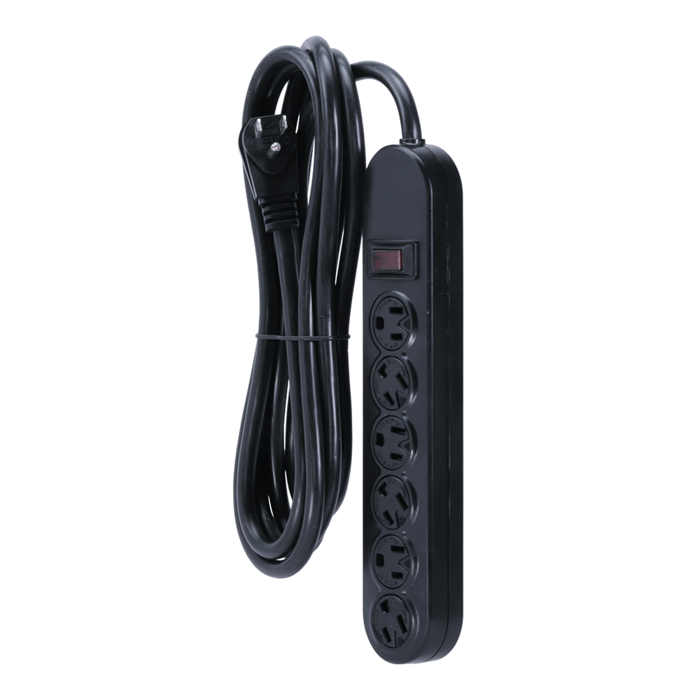 This 6 Outlet Power Strip uses regular house current. (rated: 15 Amps, 125 Volts) Do Not Exceed 1875 watts. In case of an overload the unit is equipped with a circuit breaker which will shut off all power. Eliminate the overload, then reset by pressing switch to the RESET position.