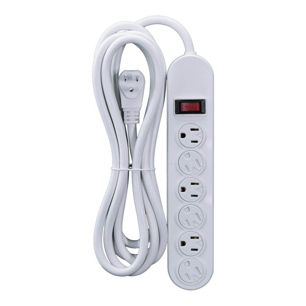 Grounded Triple Plug Outlet On/Off Power Switch, ETL Listed, White