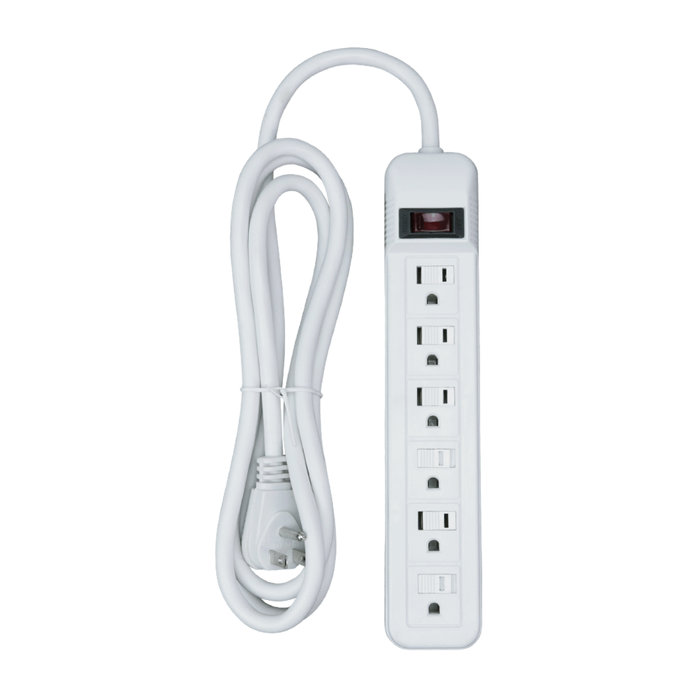 6 Outlet Power Strip, White or Black - 9 or 12 Foot Cord