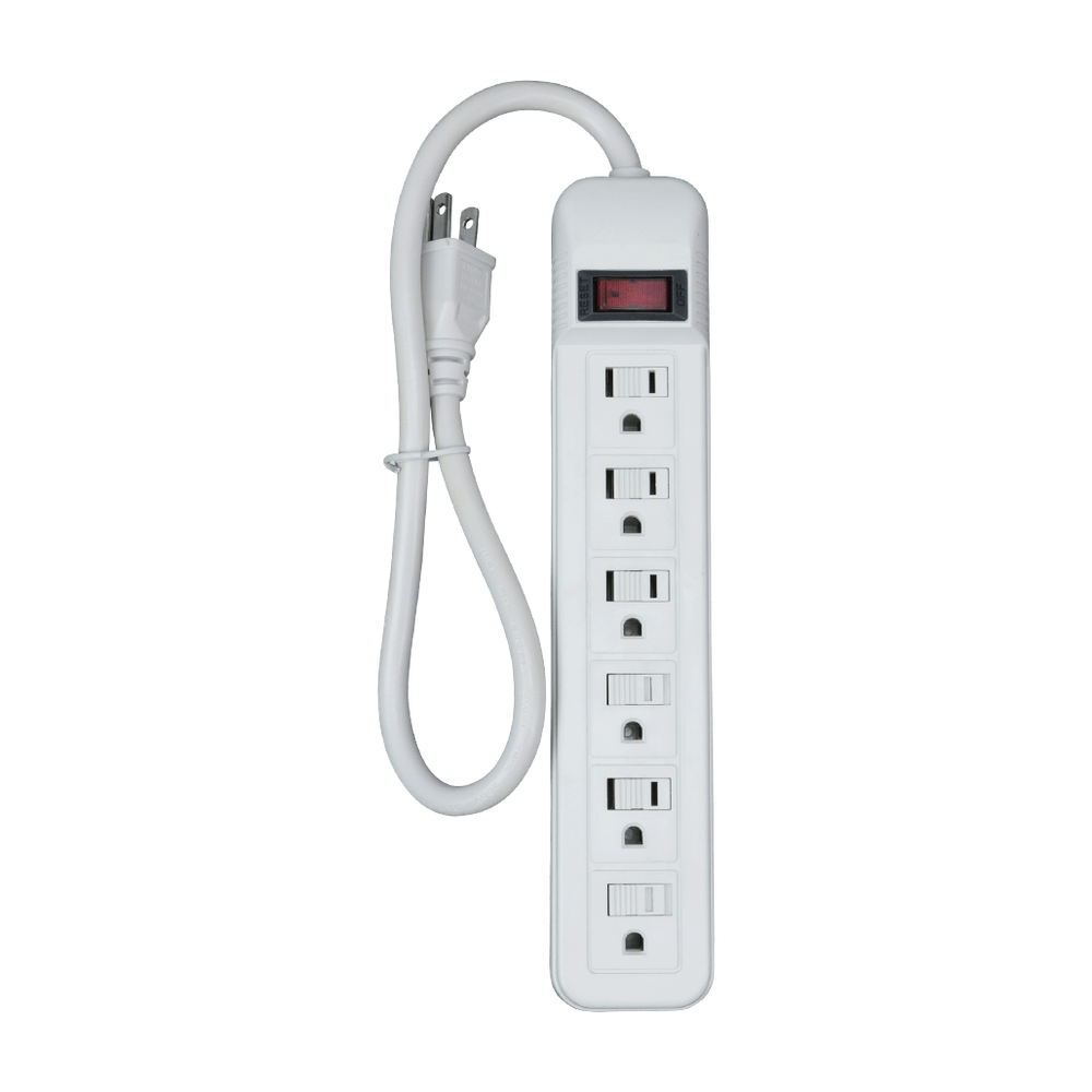 - All 6 outlets-Push reset on power switch