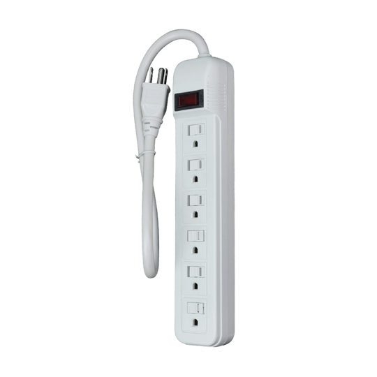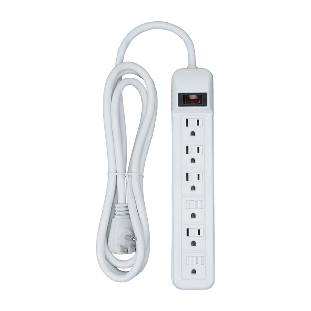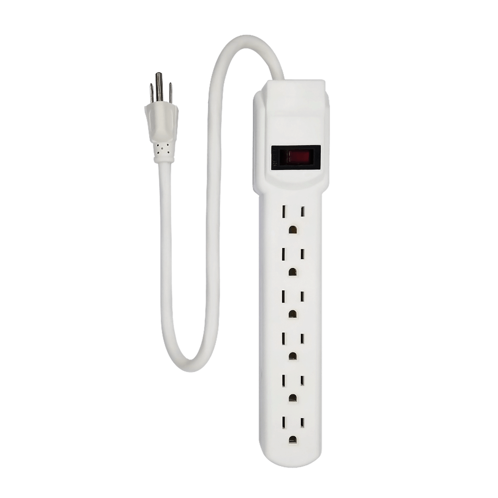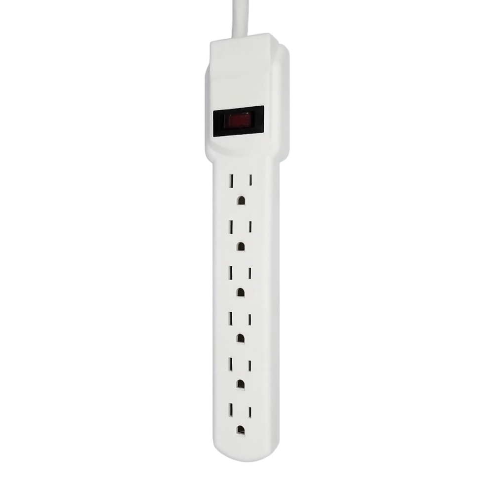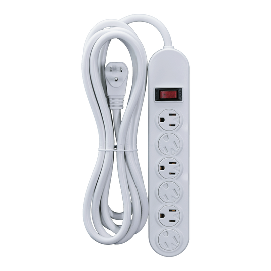 6 Outlet Power Strip, White or Black - 9 or 12 Foot Cord