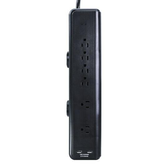 6 Outlet Surge Protector, 300-Joule, 2 USB Ports, White or Black - 4 Foot Cord