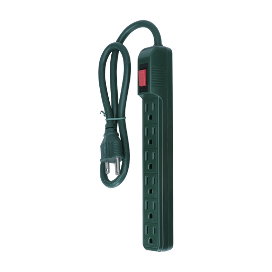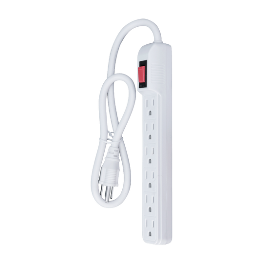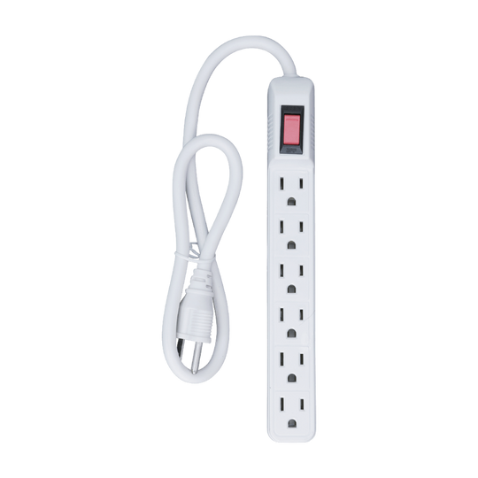 6 Outlet Power Strip, White or Green - 2 Foot Cord