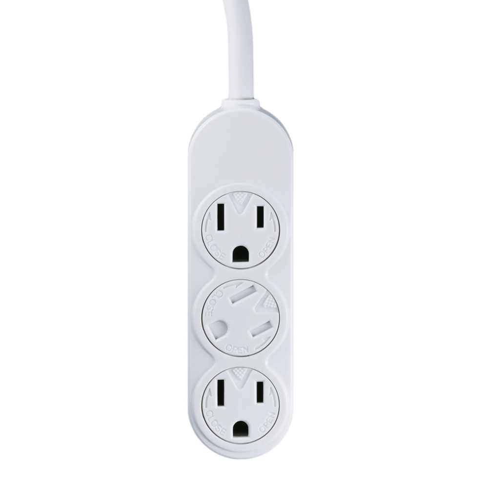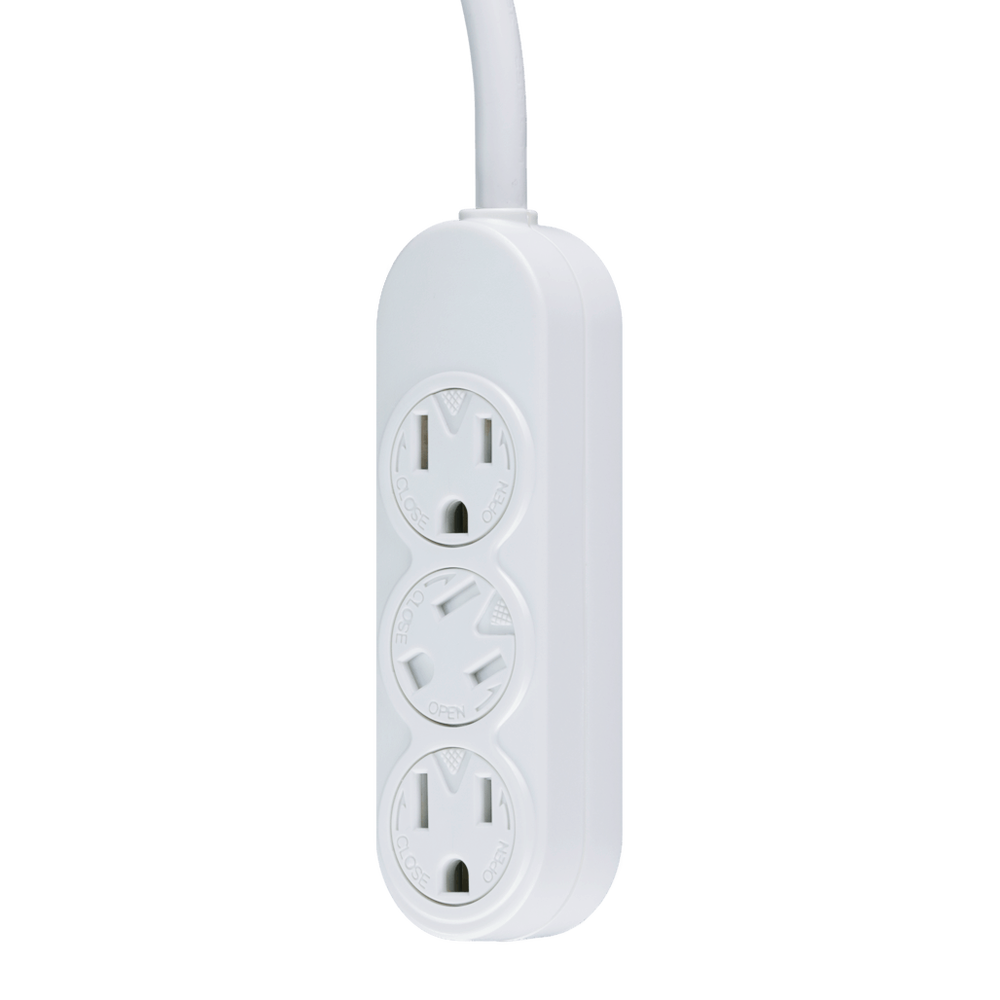 Grounded Triple Plug Outlet On/Off Power Switch, ETL Listed, White