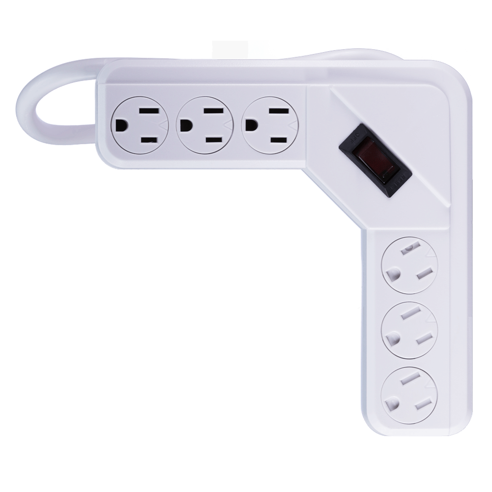 6 Outlet Power Strip, White or Black - 9 or 12 Foot Cord