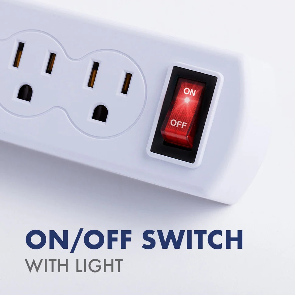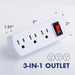 Grounded Triple Plug Outlet On/Off Power Switch, ETL Listed, White